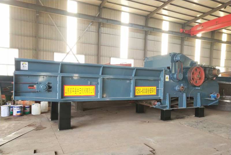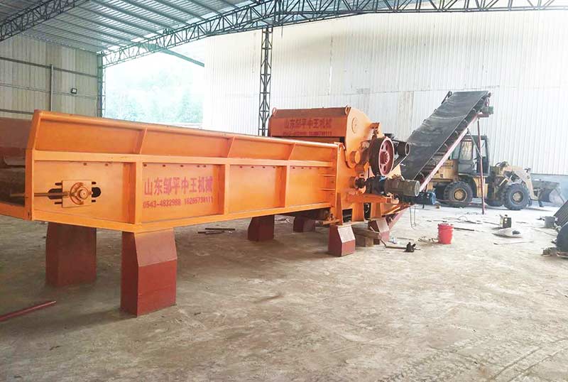 綜合破碎機是將所投入的木材質破碎而制造塊狀的機械,綜合破碎機設有行進裝置的車體、被設于該車體的一端側的將木材粉碎而形成木材的旋轉式破碎裝置、設于該旋轉式破碎裝置的上部的翼片式供給裝置、被從旋轉式破碎裝置的下部向車體的行進方向另一端側延伸地設置的將由旋轉式破碎裝置破碎了的木材搬出而向外部排出的搬出裝置、被配置于旋轉式破碎裝置及搬出裝置之間的驅動行進裝置,旋轉式破碎裝置、翼片式供給裝置及搬出裝置的驅動源的驅動裝置。
